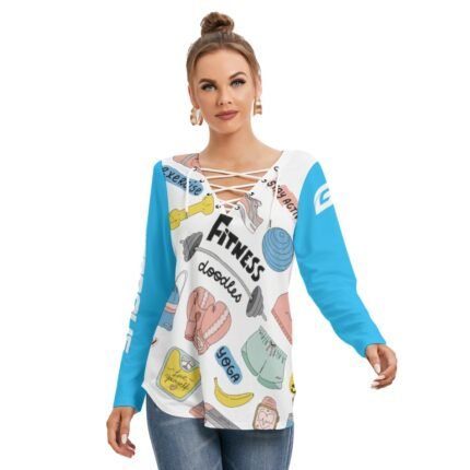 All-Over Print Women’s Long Sleeve Neckline Tie Sweatshirt